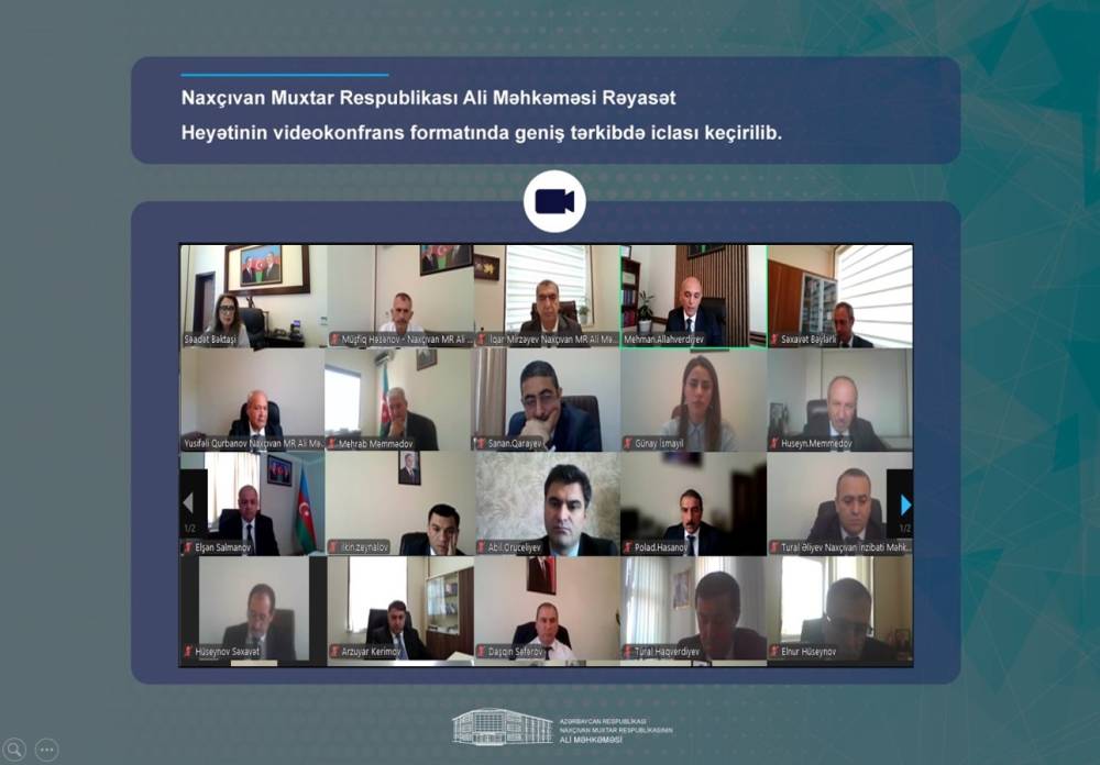 Naxçıvan Muxtar Respublikası Ali Məhkəməsinin Rəyasət Heyətinin videokonfrans formatında geniş tərkibdə iclası ke...